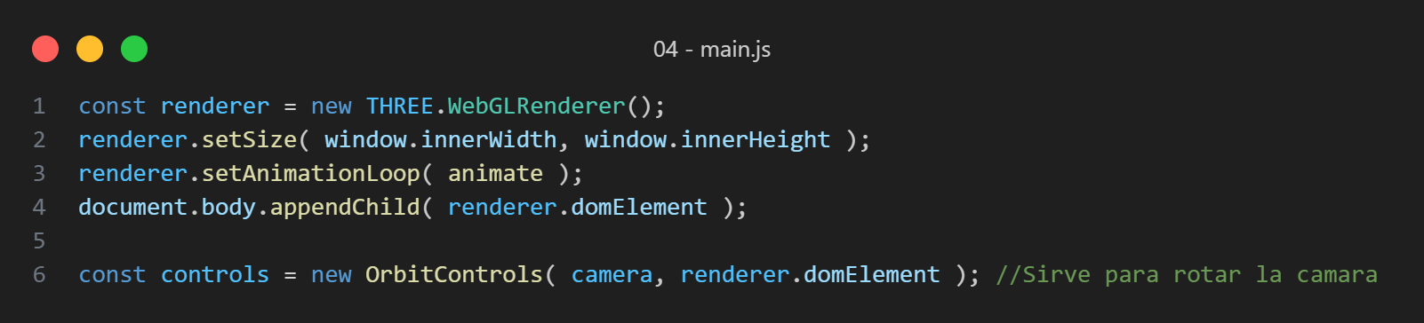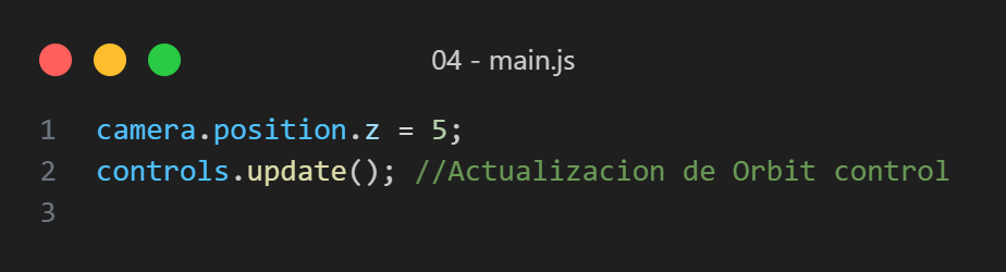Debajo de la posición de la cámara, agregamos la línea que nos va a permitir actulizar la constante controls